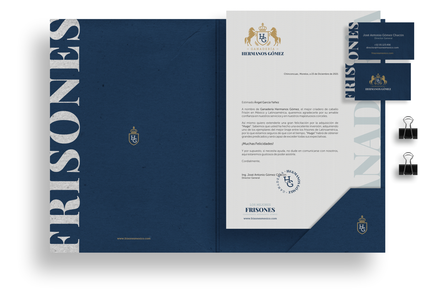 Ganadería Hermanos Gómez nos confió la tarea de hacer un rebranding que conservara la esencia del logo original, pero con un concepto gráfico más actual al que ya poseían; sobre todo un diseño capaz de representar con fidelidad la gran calidad de la ganadería y la elegancia del caballo frisón.